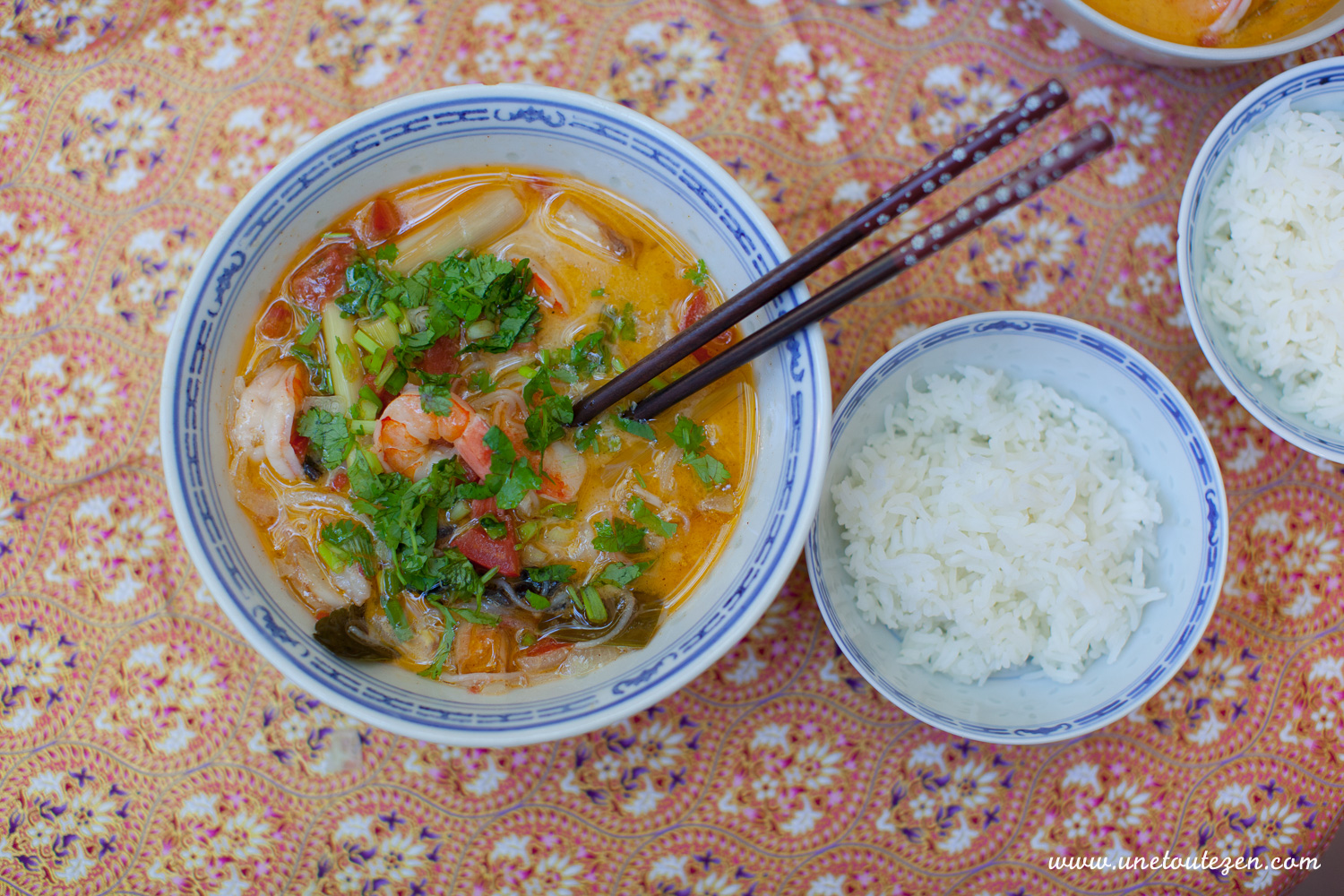 - des fruits de mer congelés revenus à la poele avec de l’ail et de l’échalotte + lait de coco