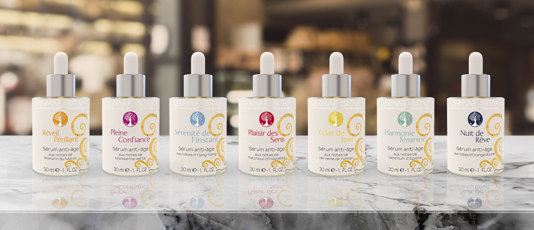 Dermapositive est une gamme de cosmétique positive, qui a pour objectif d’équilibrer les émotions intérieures de la femme. Chaque huile illumine le teint et travaille sur une émotion. La gamme se décline en 7 sérums olfacto-émotionnels. Ces formules uniques allient les effets antioxydants des meilleurs actifs anti-âge, aux effets positifs de l’olfactologie et de l’aromathérapie, pour un rééquilibrage des émotions internes.