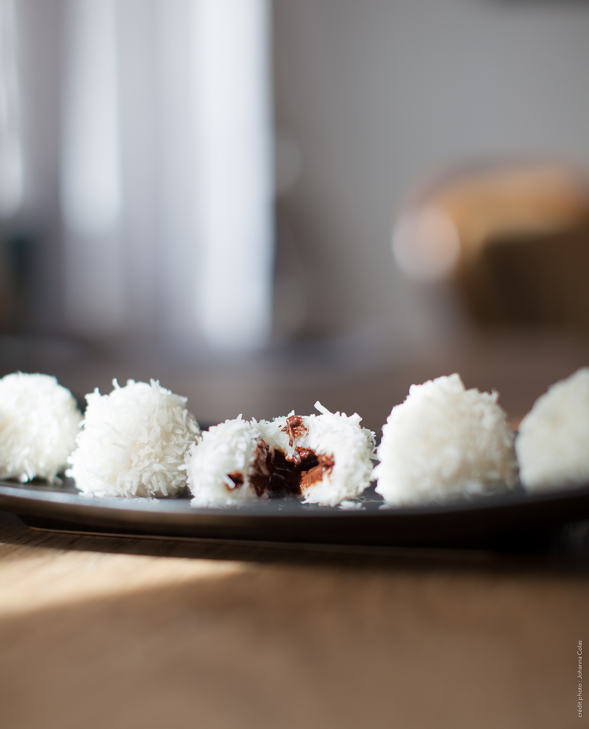- Refermer la perle de coco et refaçonnez une petit boule ronde avec vos mains.