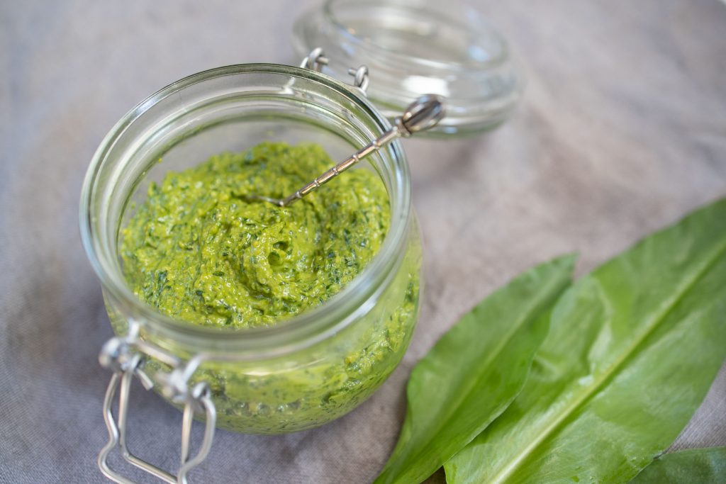Si vous trouvez de l’ail des ours sauvage, assurez vous que ça soit bien de l’ail des ours et pas une autre plante car on peut souvent le confondre avec le muguet. Dans cette recette, nous utilisons de l’ail des ours cru, il est très important de bien le rincer avant consommation. Attention toutefois car les déjections de chiens et de renards peuvent vous donner l’échinococcose (des vers dans l’intestin), vous trouverez plus d’informations sur cet article. Le plus sur est encore de vous procurer de l’ail des ours en supermarché bio ou de le passer au Vitaliseur de Marion quelques minutes avant d’en faire le pesto (version non testée).