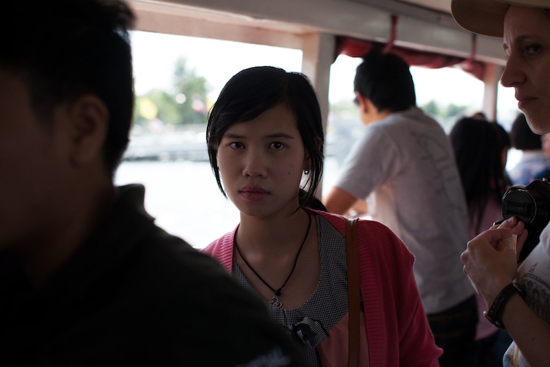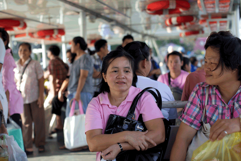 Il faut un foulard pour la pollution, l’essence thaï pue, leurs moteurs aussi, on remarquera tout au long de ce voyage que tous les moteurs puent, et que bien souvent, leurs voitures ne passeraient pas le controle technique qu’on a chez nous. L’avantage du bateau est qu’on est en plein air, et pas de bouchons.