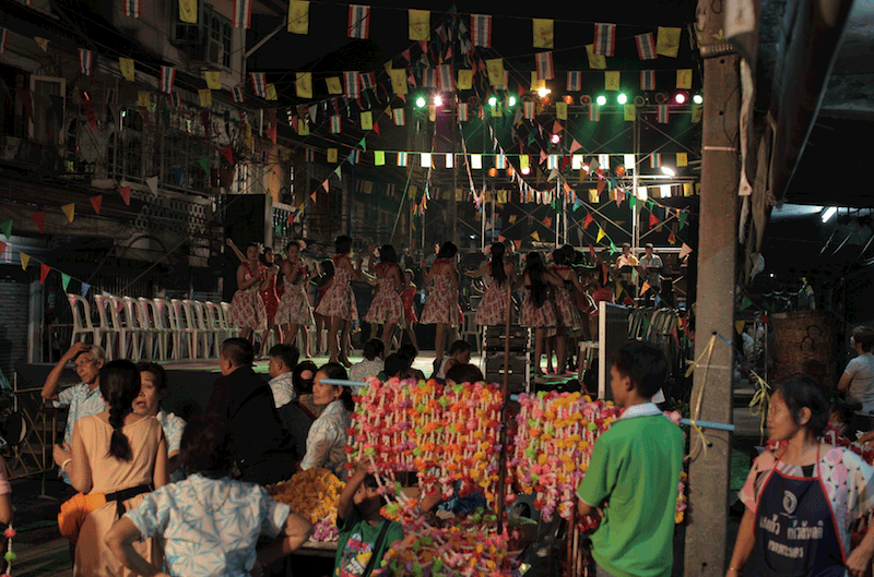 En déambulant dans les rues, on tombe par hasard sur un théatre de rue chinois, magnifique avec leurs costumes et leurs maquillages. On s’étonne de voir cela alors que quelques rues plus loin, il n’y a que des fleurs ! Un chinois nous dit d’aller un peu plus loin dans le quartier pour voir une fête chinoise. Effectivement il y a des danseuses chinoises ou thaïlandaises, tout le monde danse, rie, chante ! Il faut oser sortir des rues fréquentées et s’enfoncer dans les quartiers. Au début, on se demande ou on va, c’est sombre, exigu, mais à notre grande surprise, on a toujours découvert des lieux fantastiques !!
