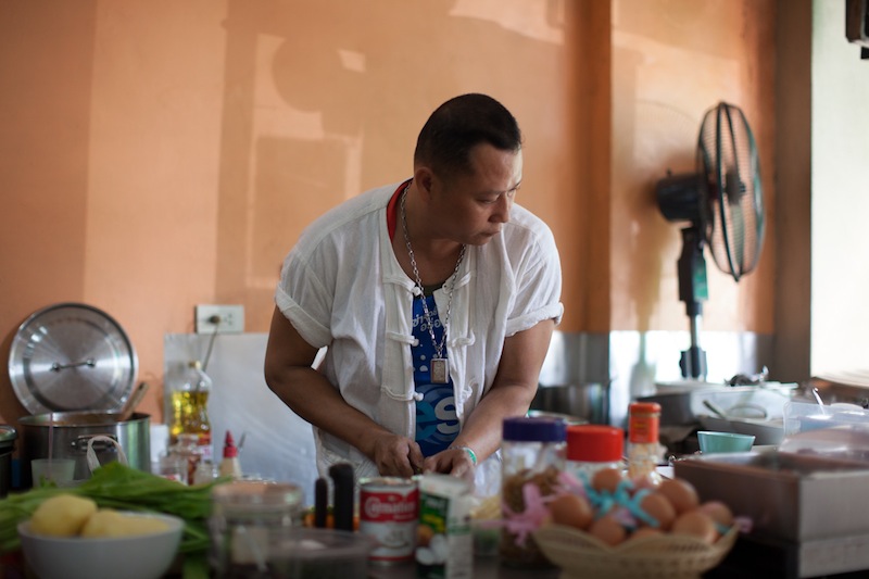 Ils ont réussi à adapter dans une petite ruelle étroite, toute une installation de cuisine, c’est comme un restaurant de fortune.