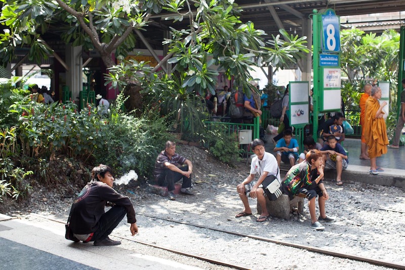 Le soir, avec le groupe nous mangerons tous au Greenleaf et effectivement, il y a une bonne ambiance. Nous décidons tous de repartir le lendemain matin à 8h au centre ville de Pak Chong, certains prendront le bus, d’autre le train. Nous retournons donc sur Bangkok, on pensait y aller en train mais comme le train arrive de loin, que Pak Chong n’est pas le point de départ, on ne sait pas combien d’heures de retard il aura. On nous conseille fortement le bus, qui lui, au moins, part à l’heure. Les bus partent toutes les 30 minutes.