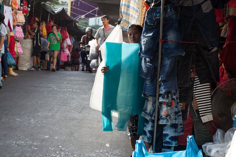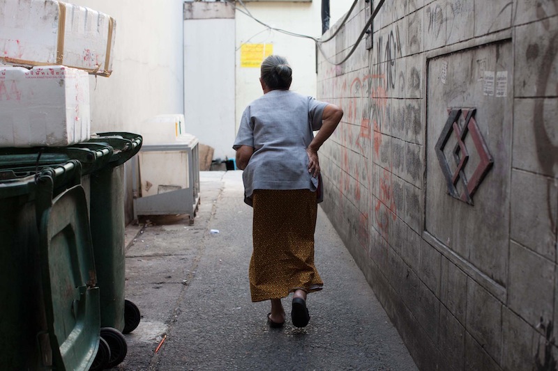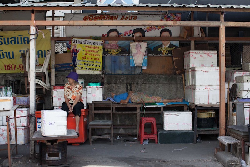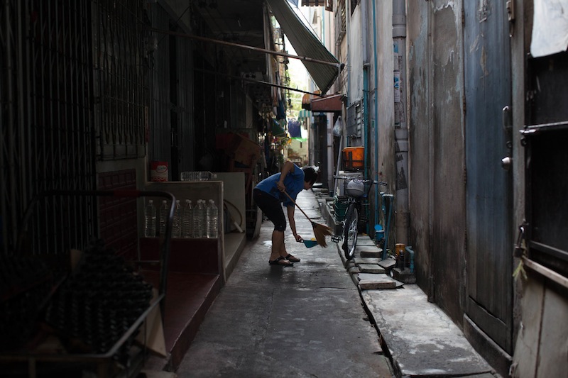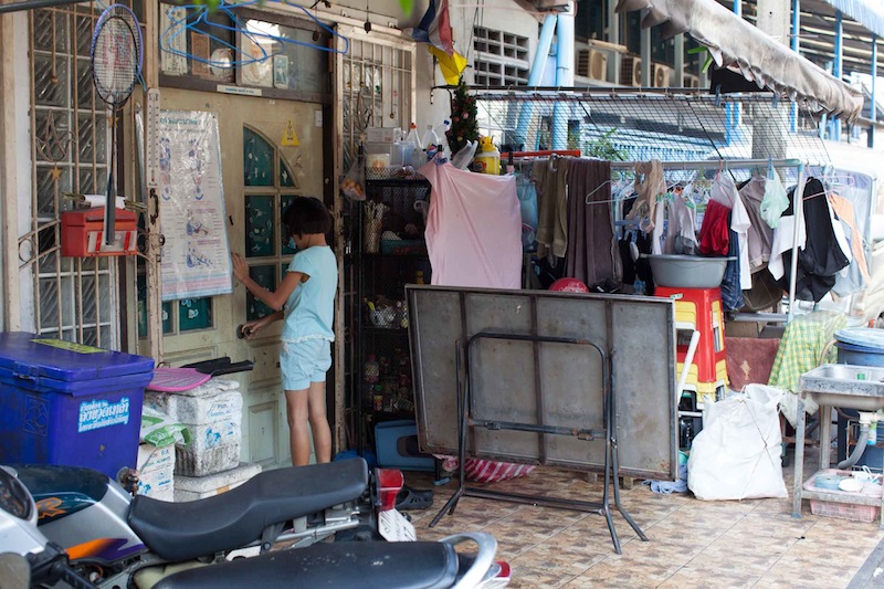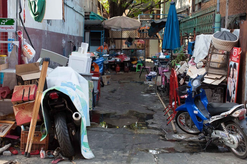 Les thailandais ont l’habitude de faire la vaisselle dans la rue, devant leur habitation, à même le sol.