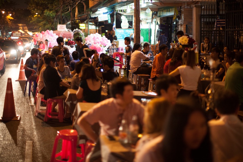 Partout dans la rue, on voit des banderoles Happy New Year, alors que les Thaïlandais sont censés ne pas fêter cette fête. Au Rajata, ils préparent la soirée, offrent des boissons, c’est très convivial !