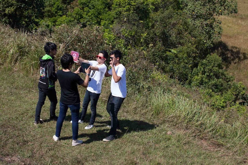 Dès le matin tôt le soleil commence à être très fort. Les Thaïlandais n’hésitent à protéger leur visage et leurs yeux.