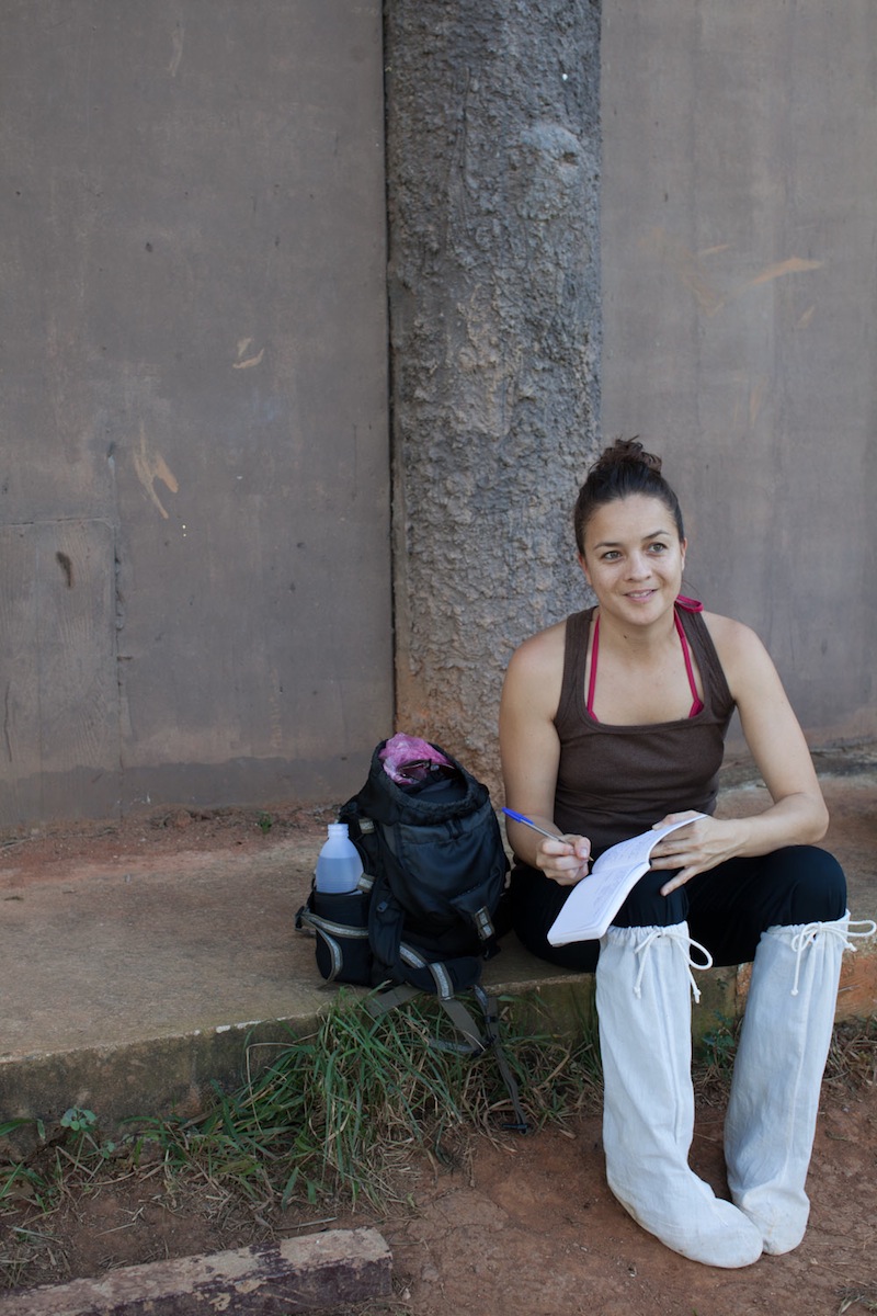 Durant cette matinée, nous avons pris soin de nous, de nos pieds (qui ont bien soufferts à force de marcher 10 heures par jour), nous les massons, on s’est coupé les ongles, etc. Bref un peu de détente !