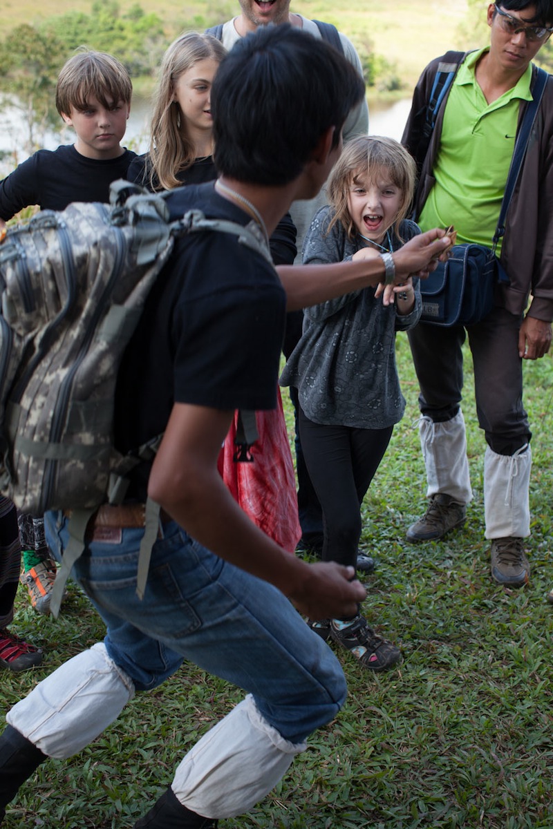 Notre guide a ramassé une bouse d’éléphant séchée et l’offrira à l’un des hollandais du groupe en souvenir !