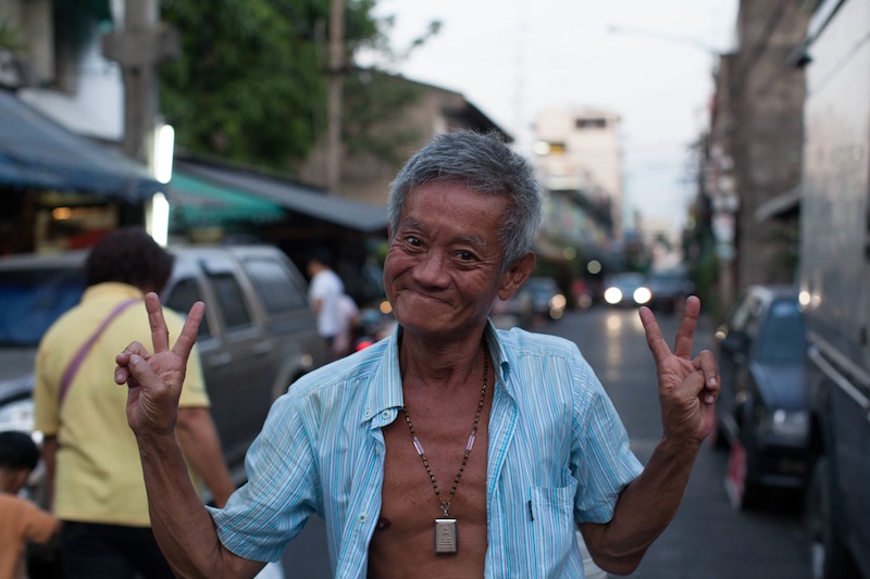 A la fin de la messe, on repart à pied vers notre quartier pour manger. On évite Kao San Road, on est tellement serein qu’on ne veut pas croiser la débauche totale et les gens saouls.