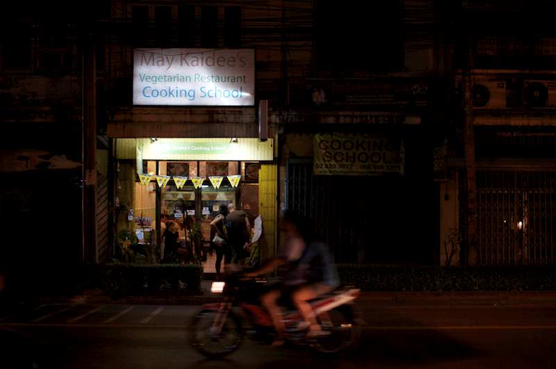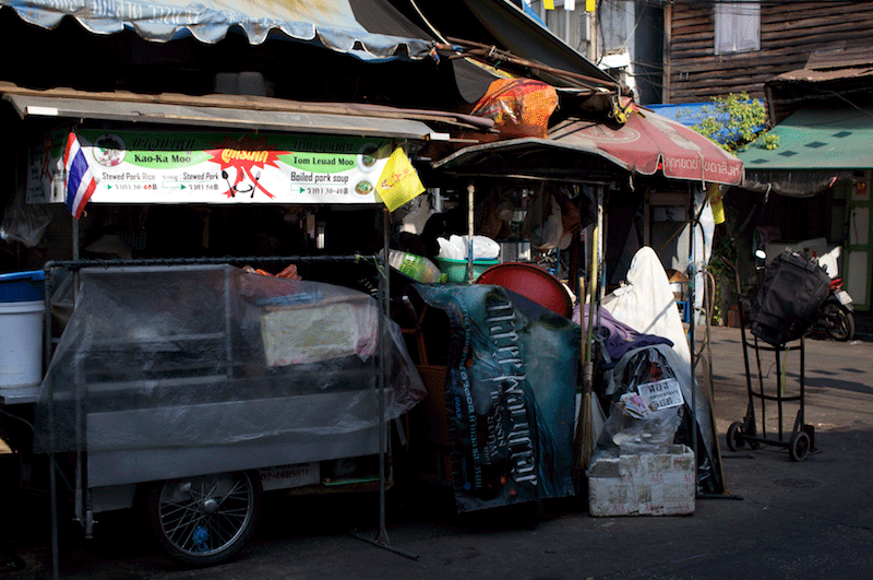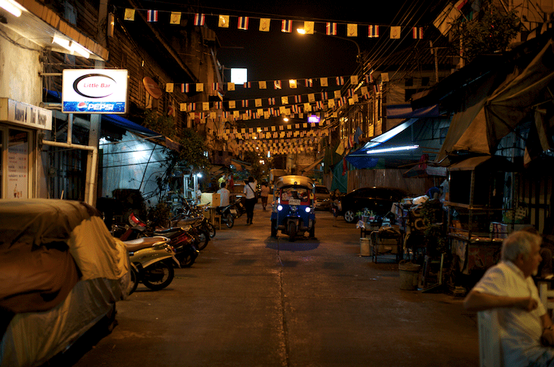 A la fin de la messe, on repart à pied vers notre quartier pour manger. On évite Kao San Road, on est tellement serein qu’on ne veut pas croiser la débauche totale et les gens saouls.
