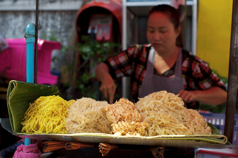 Merci à Layla, mon amie de cours de Médecine Chinoise, pour ses nombreux conseils avant départ (achat d’une pochette ventrale, scanner nos passeports, etc.) et pour nous avoir prêté son Lovely Planet, bien mieux que le guide du Routard que nous avions acheté ! Elle m’avait dit : « Vous allez vous régaler avec la nourriture : les pad thaï et les nouilles ». Sans elle, je n’aurai peut être pas eu l’idée de gouter cela car nous ne mangions, au début, que des soupes ! Quel régal ces Pad thaï….