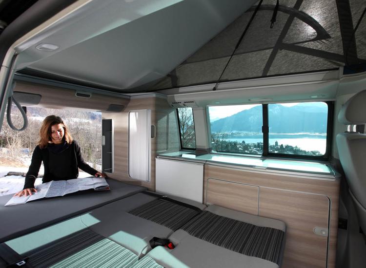 - Est il possible de voyager en van avec des enfants ? Oui bien sur, le van California T6 est équipé de 2 lits (un en haut quand le toit est relevé et un en bas). Vous pouvez facilement dormir à 4. Certains diront que l’espace est trop petit, certes, ce n’est pas un 50m2 mais un 5m2. L’expérience et l’aventure du van est de vivre en extérieur. Votre jardin peut ainsi s’étendre à l’infini. Nous avons rencontré quelques couples avec des enfants en bas age ravis de leur aventure. Idem pour les animaux, ils s’adaptent facilement à ce mode de vie.
